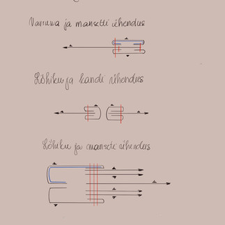 Detailide asukohad: Varrukal sisselõike asukoht 9cm käealuse õmblusest tagumisele varrukapoolele. klassikaline Sisselõike sügavus 8cm. klassikaline. Voldi asukoht 2,5cm ettepoole. klassikaline Tööprotsess: